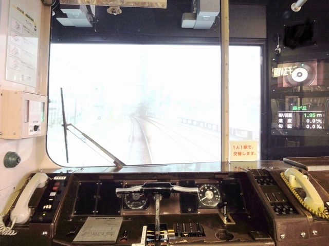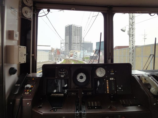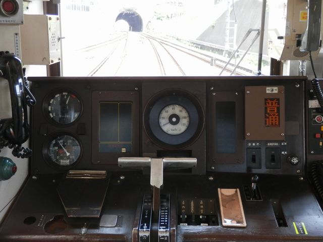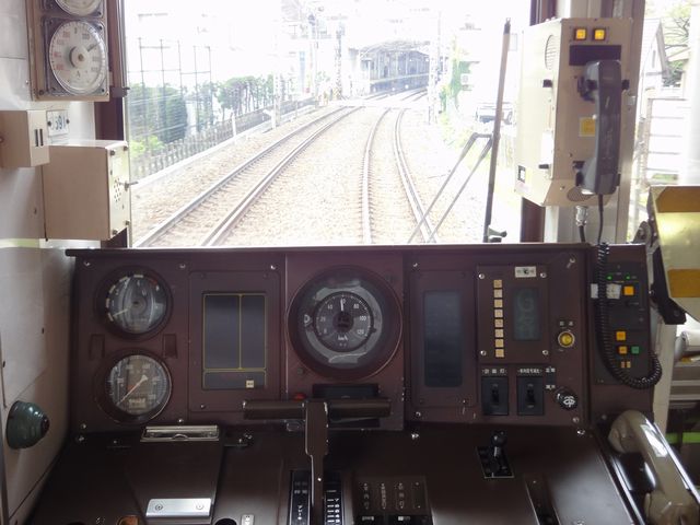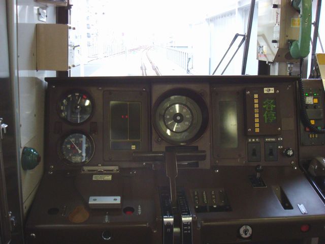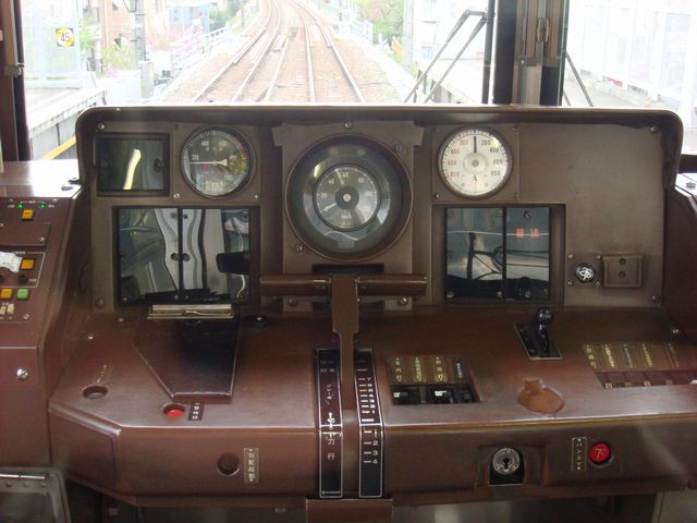 前期形では計器・表示灯類が前面窓の下部に収められたデスクタイプで登場しました。後年、田園都市線ATC化の際に後期形より少し高いタイプの運転台に改修されました。